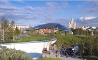 «Зарядье» – ландшафтный парк, площадь которого 10,2 га. На его территории разместились четыре характерные для России климатические зоны: тундра, степь, лес и заливные луга.