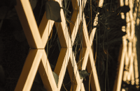 Проще всего сделать шпалеру — реечную решетку. Ее можно опереть, например, на стену дома или расположить отдельно, чтобы визуально отгородить, скажем, костровую зону. Особых навыков обустройство таких пергол не требует: понадобятся тонкие рейки, которые соединяются накрест гвоздями или саморезами. Собранную решетку закрепляют непосредственно на стене на предварительно закрепленных брусках или на вкопанных опорах — деревянных столбах.
