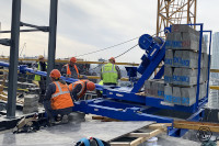Компания «Станкомаш» поставила заказчику кран Пионер собственного производства грузоподъёмностью 2 тонны. На фото представлен кран в собранном виде, который установлен на 45 этаже строящегося жилого здания. Перед вводом в эксплуатацию заказчик провел статические испытания согласно ГОСТовской методике. После испытаний был проведен осмотр конструкций крана, который показал, что испытания проведены успешно, и кран готов к дальнейшей эксплуатации.